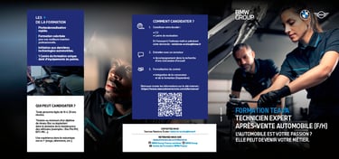 Conception d'une plaquette de formation pour l'école interne de BMW France (Partenariat avec l'agence de communication WEAD).